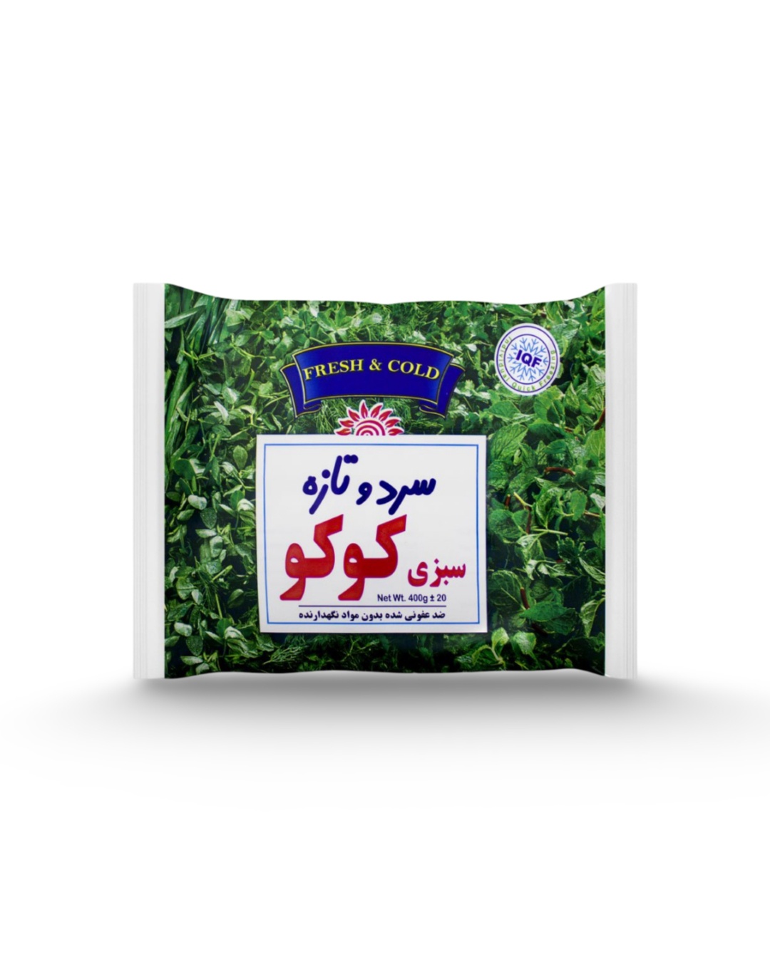 سبزی کوکو ۴۰۰ گرمی سرد و تازه، ترکیبی از سبزیجات باکیفیت شامل تره، جعفری، گشنیز و شوید است که پس از پاکسازی و شستوشوی کامل، خرد شده و در بستهبندی استاندارد عرضه میشود.
